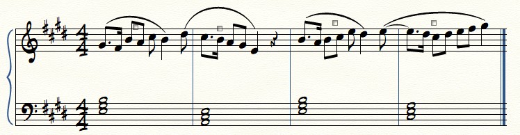 Here is a rough draft of adding “fills” to these previous blank measures: