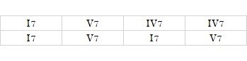 Continuing with the topic of blues, there is an other option – an abridged version – of the 12-bar blues structure. In the progressive development of rock music in the 50’s and 60’s, many artists began writing songs using the commonly available blues chords and harmonic movement… but in a short 8 measure cycle.