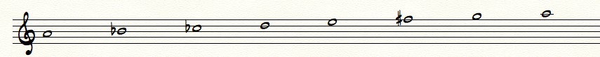 Below is a representation of the scale as if it was put into Western notation: