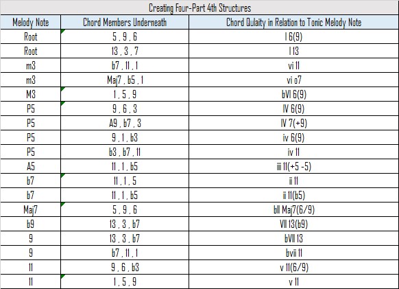 This post is about how to create fourth structures (harmonies built on intervals of fourths) with four notes.