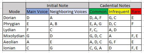 • Phrygian has its own unique cadence of going down by half-step and going up by whole-step.