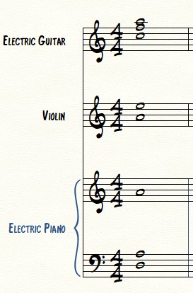 We have talked about previously about assigning the added tone the disrupts the triadic sound to another instrument family group. However, that rule is not so easy to apply to other clusters…