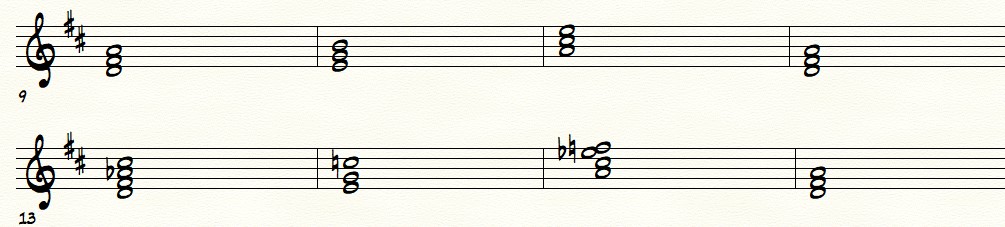 Notice how this is very similar to the I – Imaj7 – I7 – IV – iv progression talked about earlier. Now, the iv chord is replaced with the #ivo chord to give it more motion to the fifth scale degree.