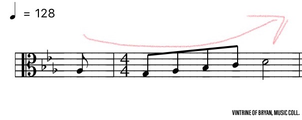 Notice how as the duration values of the notes progressively get smaller, the more flags and beams (wavy lines and connecting horizontal bars, respectively) there are attached to the stem (vertical line) of the note.