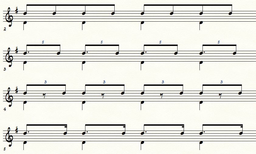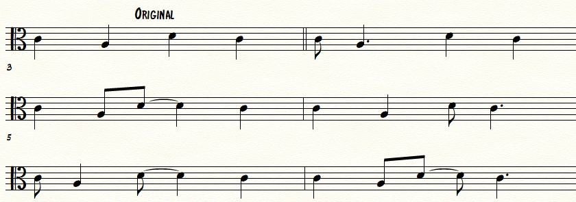 One way of incorporating some rhythmic interest in your piece is to use a tresillo pattern.